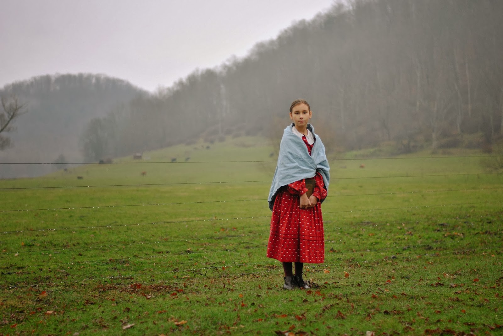 I told Haley to pretend she was "Laura Ingalls carrying her books and running because she was late for school" (photo by me)
