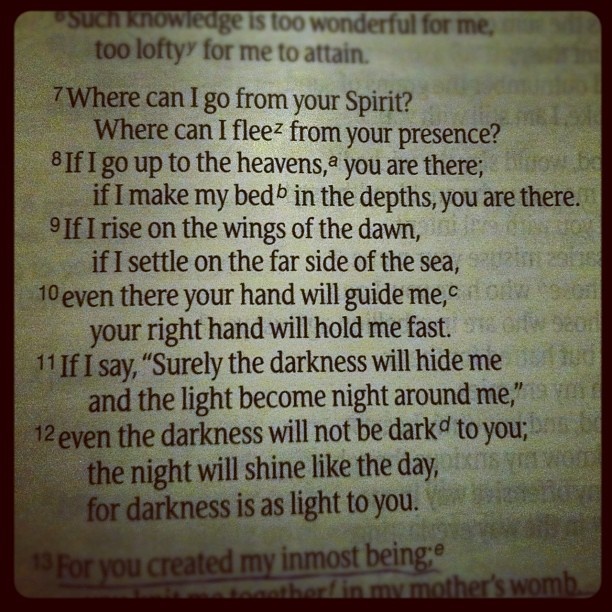 11. What is your favorite Bible verse? Once again I don’t know if I could choose just one, but I really like Mark 9:24 and Psalm 139:7-12
